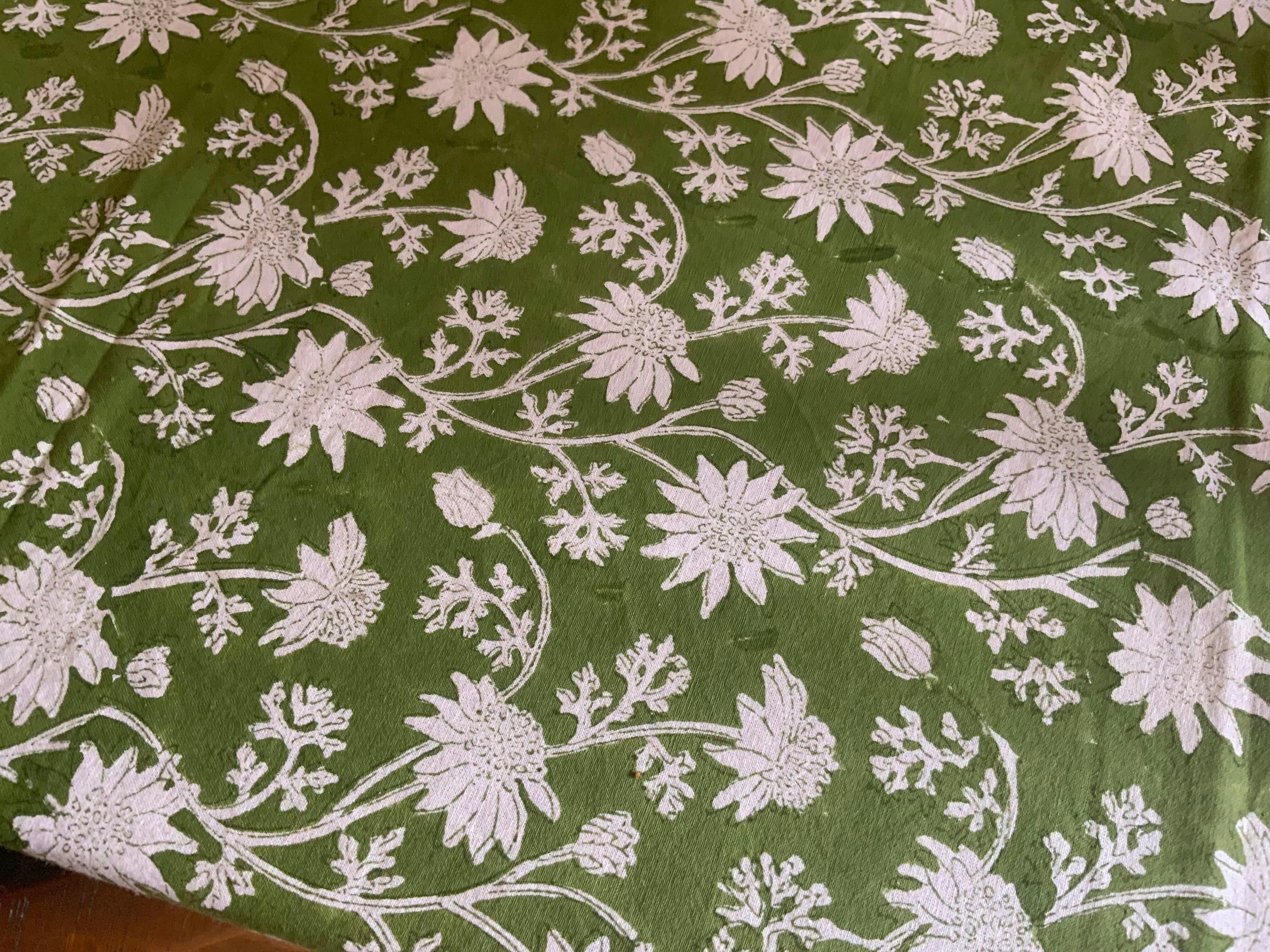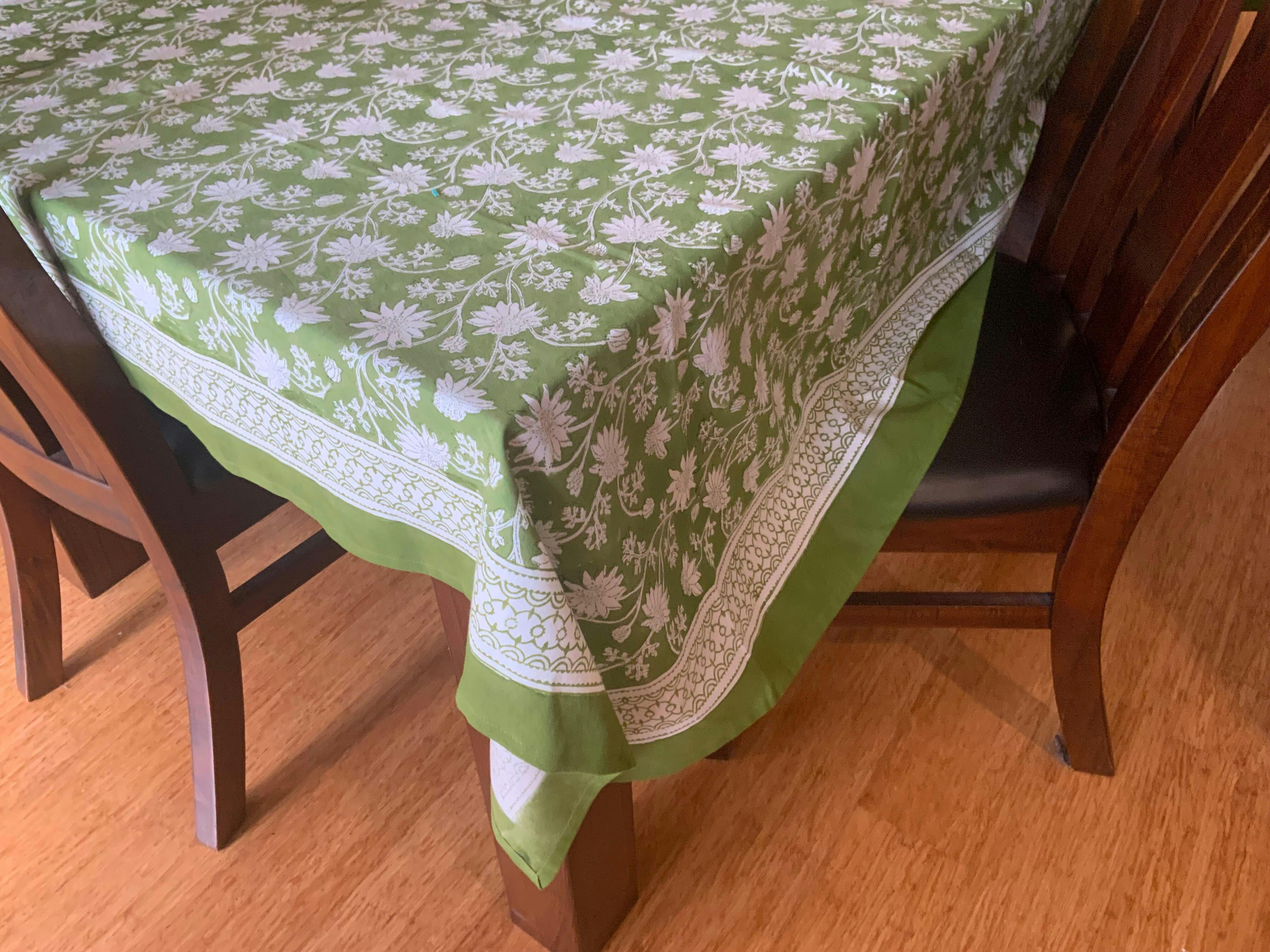 Disclaimer - Please note that you may see a wavy line along the length of the tablecloth. This is an imperfection that comes from the hand block printing process, which creates a one-of-a-kind look and should not be seen as a defect. See photos 12 and 13 for examples.